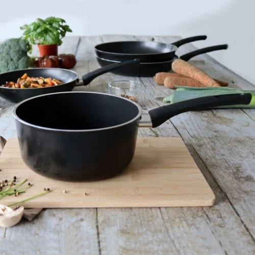 Menastyl Poêles Et Wok Sauteuse Avec Couvercle Compatible Induction 24 Cm En Aluminium